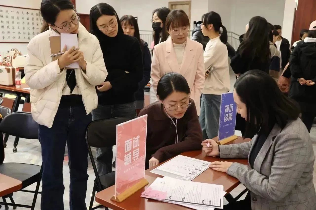 中景瑞晟总经理助理王晓乐、组织发展部主管郑方钰子、技术标准部主管庄妍向同学们提供一对一的简历诊断与面试指导,提出了宝贵建议,有效回应了同学们现阶段的求职困惑与疑虑。此外,中景瑞晟(北京)管理咨询有限公司还邀请企业内部的两位优秀校友进行经验分享,使同学们了解到丰富的行业知识、学习到实用的职场技巧。