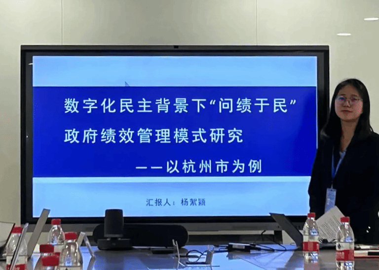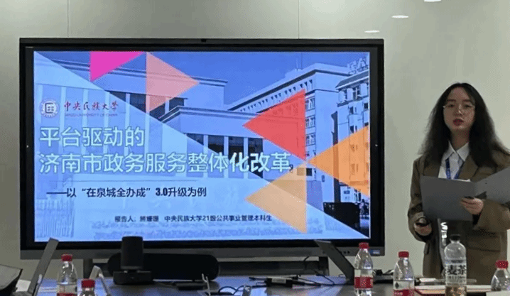 在数字治理分论坛中,我院学生代表熊姗珊就《平台驱动的济南市政务服务整体化改革——以“在泉城全办成”3.0升级为例》一题进行学术作品展示,杨絮颖就《数字化民主背景下“问绩于民”政府绩效管理模式研究——以杭州市为例》一题进行学术作品展示。