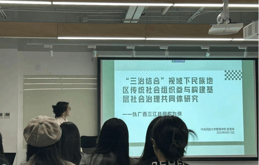 在乡村振兴分论坛中,我院学生代表陈易琳就《“三治结合视域下民族地区传统社会组织参与构建基层社会治理共同体研究——以广西三江县侗款为例》一题作学术作品分享,教师嘉宾指出调研需要进行深入的田野调查,并且要跳出材料本身,需要在更广阔的层面上讨论社会真实,寻找其本质。